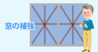 雨戸のない部分の窓はテープで補強しておくと安心です。割れにくくなります。窓ガラスが割れてしまった場合でもガラスの飛散をある程度軽減できます。