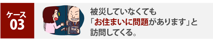●災害発生時は「今すぐ何とかしたい」という焦りや心の隙間につけ込んだ悪質業者が現れますので十分な注意が必要です